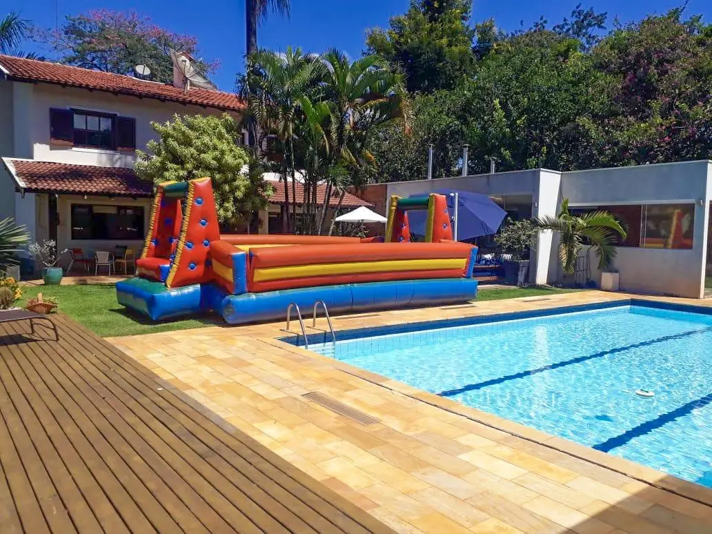 Cama elástica, tobogãs gigantes e brinquedos infláveis irados que garantem a adrenalina e o gasto de energia com segurança.